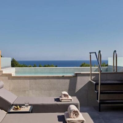 Het Celestial Hotel is dé plek voor wie even helemaal weg wil. Dit stijlvolle, adults-only hotel ligt op het zonovergoten eiland Kefalonia, op loopafstand van het prachtige Trapezaki-strand. Denk: relaxte vibes, luxe suites met lichte kleuren en natuurlijke materialen, én een privézonneterras bij elke kamer. Alle suites hebben ook een eigen zwembad – de perfecte plek voor wat quality time en een waanzinnig uitzicht over de zee en de bossen.
