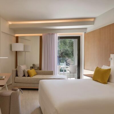 De ligging direct aan het strand maakt dit hotel ideaal voor liefhebbers van zon en zee. De omgeving is groen en rustig. Het is ook leuk om de omgeving te verkennen; zes keer per week rijdt er een shuttlebus naar Corfu-stad, waar je de charmante straatjes en gezellige terrassen ontdekt. Echt een must-do!
