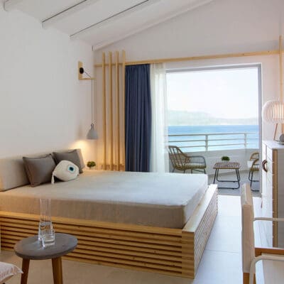 Je kunt in alle rust genieten van je vakantie in het Only Adult hotel Proteas Blu Resort. Dit resort biedt een uitgebreid aanbod aan luxe faciliteiten en diensten, waardoor je verblijf zo ontspannen en aangenaam mogelijk zal zijn. Je kunt in de drie à-la-carterestaurants genieten van voortreffelijke gerechten. Ontspanning vind je tijdens een massage of schoonheidsbehandeling. 's Avonds kun je met een drankje in de hand genieten van de adembenemende zonsondergang. Het resort is tegen een heuvel gebouwd en biedt een schitterend uitzicht op de twee afgelegen baaien. Het pittoreske dorpje Pythagorion, gelegen op ongeveer 2,5 kilometer afstand, ligt te midden van een heuvelachtig, groen landschap en herbergt tal van historische overblijfselen. Proteas Blu Resort straalt kwaliteit en service uit en is zonder twijfel een van de mooiste hotels op Samos.